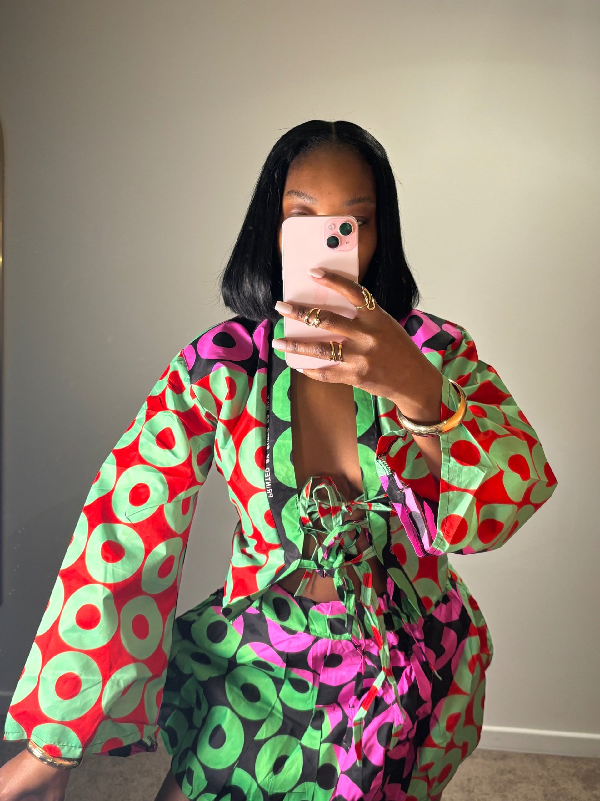 Créée en 2023 après une immersion en Côte d’Ivoire, la marque puise son inspiration dans le pagne africain, symbole fort de culture et d’identité.